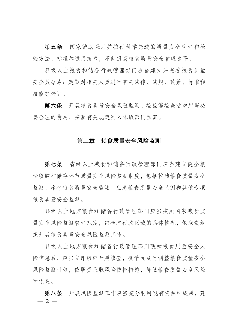糧食質(zhì)量安全監(jiān)管辦法